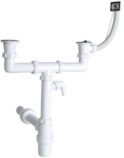Styron 6/4˝ NA40 2 medencés mosogatószifon 1túlfolyóval, mosógép csatlakozóval (STY539-7)